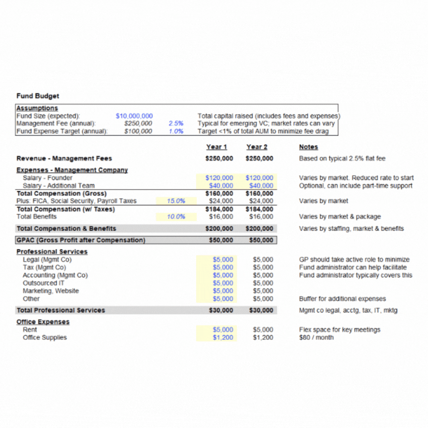 You'll get our Premium VC Fund Budget in XLXS format